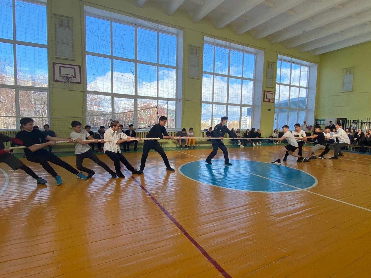 Среди учеников 8-11 классов прошёл спортивный марафон «А,ну-ка,парни!».Они соревновались в сборке автомата, отжимались на время, перетягивали канат.Молодцы,парни!Наши настоящие будущие защитники Отечества.